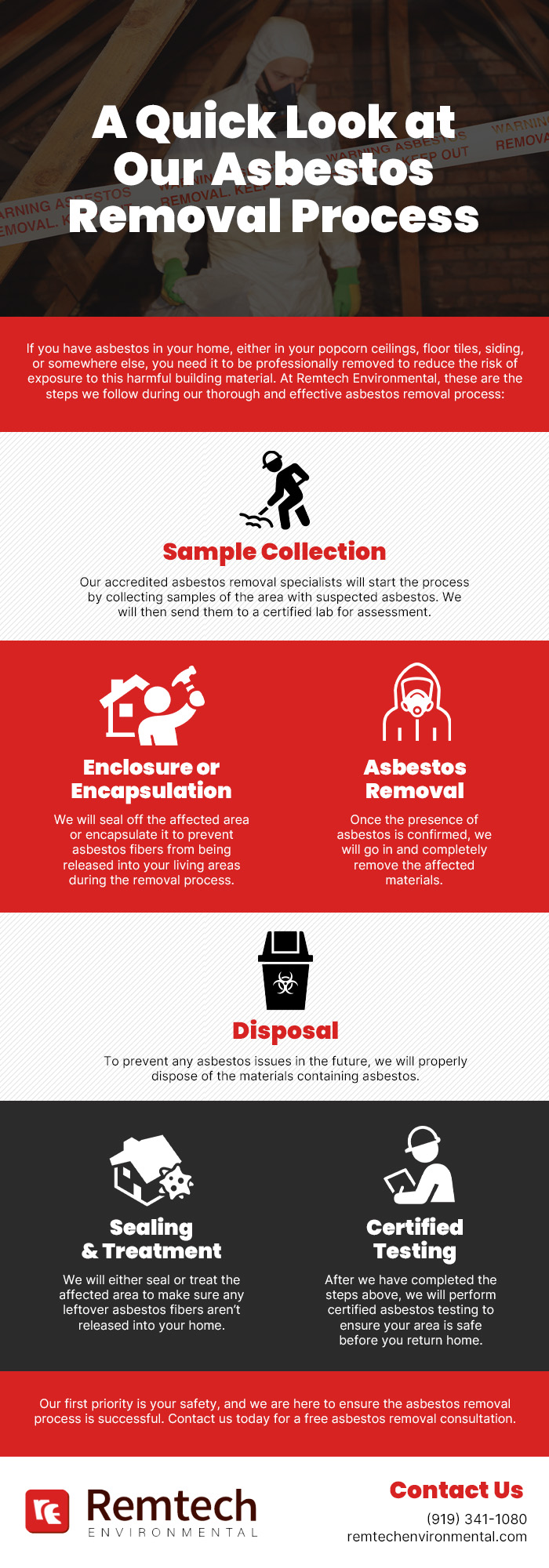 At Remtech Environmental, we offer a range of services to help handle asbestos present in buildings throughout Raleigh, Durham, Cary, Asheville, Morrisville, Wake Forest, Wendell, Winston-Salem, Apex, Chapel Hill, and Greensboro, North Carolina.
